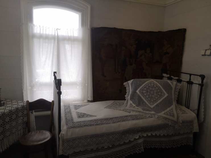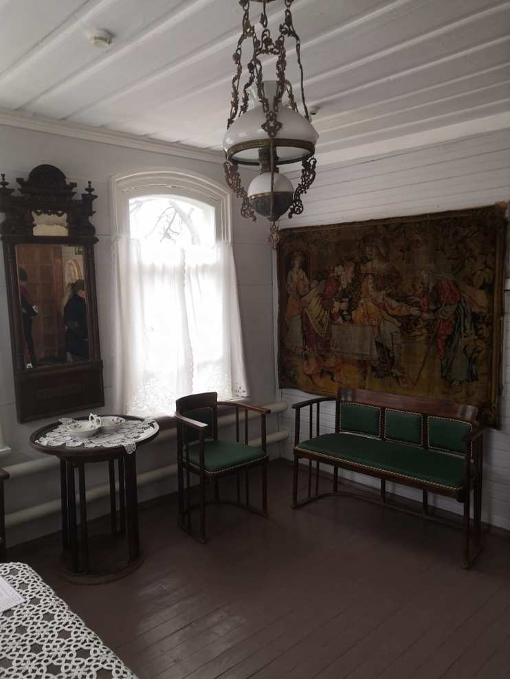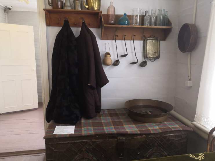 Дом выделялся красотой архитектурных деталей: два входа - рабочий и парадный, резной навес над каждой дверью, галерея вдоль стены дома, резьба по дереву на карнизах по периметру дома, резные наличники. Возраст дома - порядка двухсот лет. После переноса и восстановления здания здесь находился сельсовет, а в 1997 году его передали эколого-историческому музею. Здание подняли на высокий, специально сооруженный каменный цоколь, ремонтно-восстановительные работы продолжались пять лет.