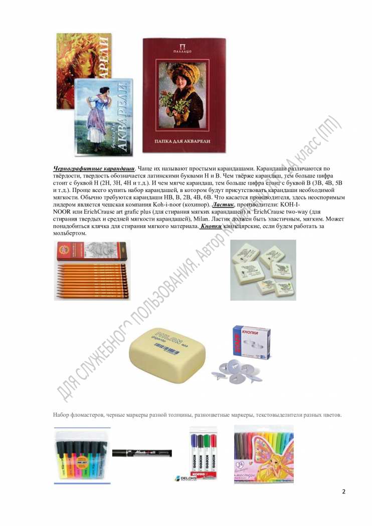 Примерный список принадлежностей на занятия для начала нового учебного года.