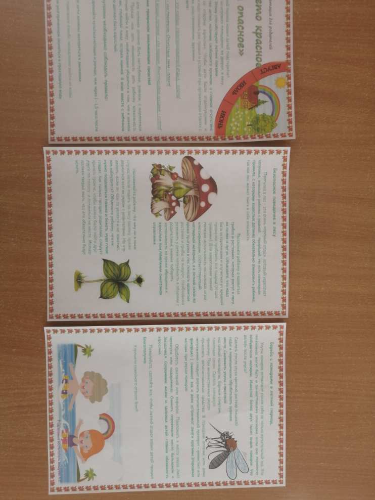 Не забыли мы и о работе с родителями. Для них были оформлены рекомендации по теме недели и консультация «Лето красное и опасное» (их можно найти в разделе «Мои публикации»).