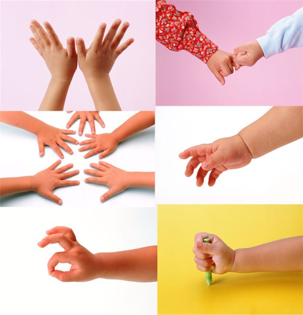 Движения пальцев и кистей рук ребенка имеют особое развивающее воздействие. Как вы помните, у новорожденного кисти всегда сжаты в кулачки, и если взрослый вкладывает свои указательные пальцы в ладони ребенка, тот их плотно сжимает. Малыша можно даже немного приподнять. Однако эти манипуляции ребенок совершает на рефлекторном уровне, его действия еще не достигли высокого мозгового контроля, который позволяет впоследствии сознательно выполнять движения.