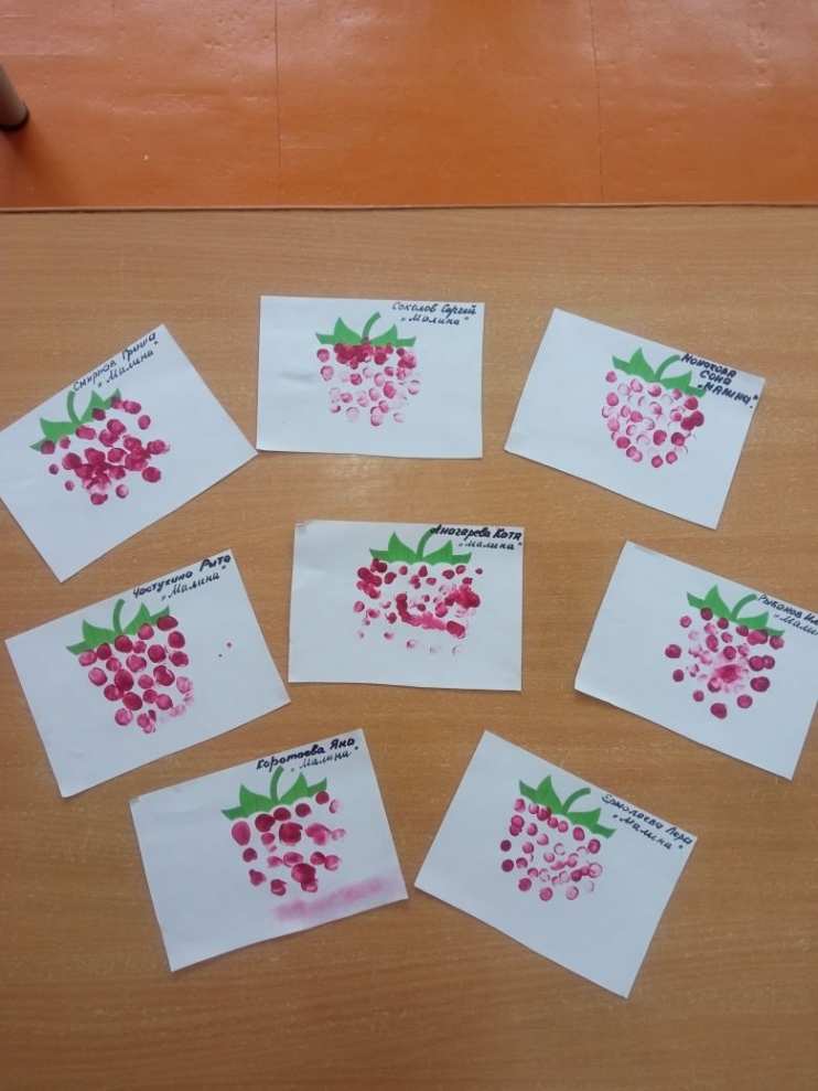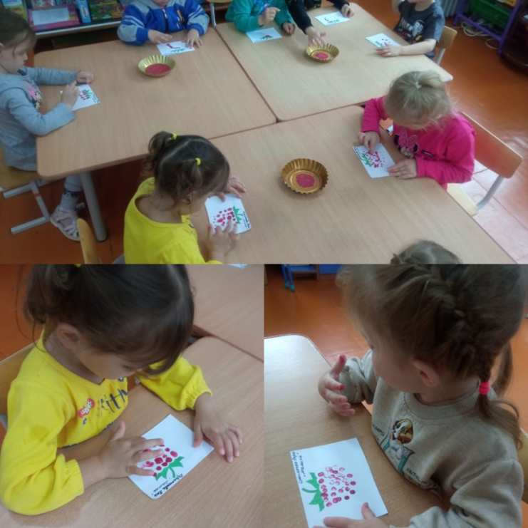 На занятии по рисованию дети повторили технику рисования пальчиками.
