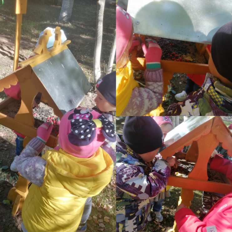 А потом ягодки рябины дети положили в птичью столовую, чтобы птицы полакомились красной ягодой.
