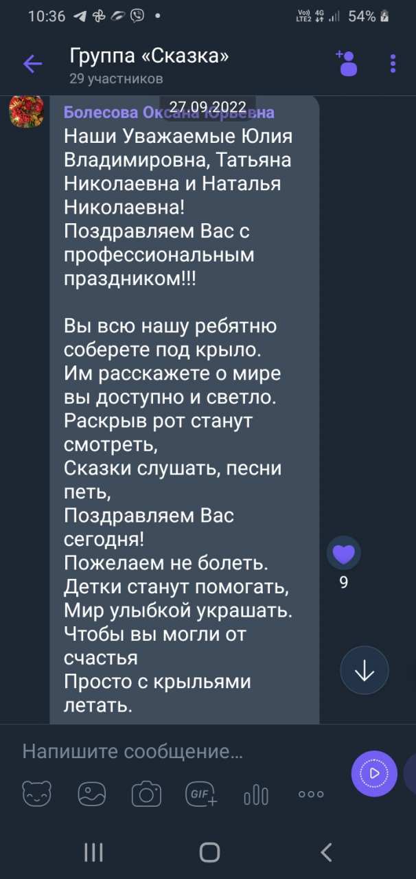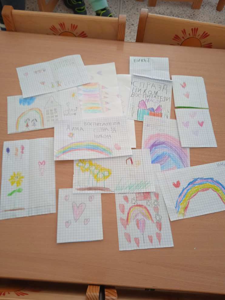 В этот день все дети в нашей группе поздравили нас, своих воспитателей, с праздником: кто-то угостил конфеткой, кто-то принес открыточку, самостоятельно сделанную, были и те, кто прочел поздравление: