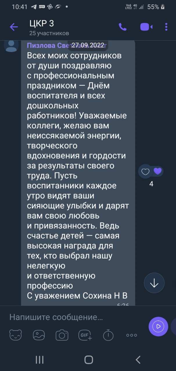 И конечно не обошлось без поздравлений администрации - нашего руководителя Сохиной Наталии Владимировны