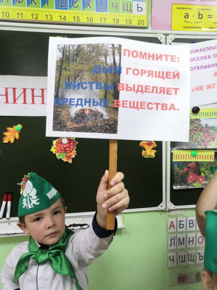 В этот день в классе классным руководителем Симоновой В.В. была проведена экоминутка, где ребятам рассказали, какой большой вред природе наносит процесс сжигания осенней листвы.