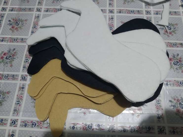- Взять два шаблона коня из фетра. Клеем промазать обо шаблона.