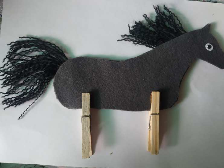 Мастер-класс по изготовлению «коня казака» был проведён в нетрадиционной технике исполнения. Ноги коня ребята сделали из обычной деревянной прищепки, грива представляла собой шерстяные нитки, а туловище было выполнено из фетра.