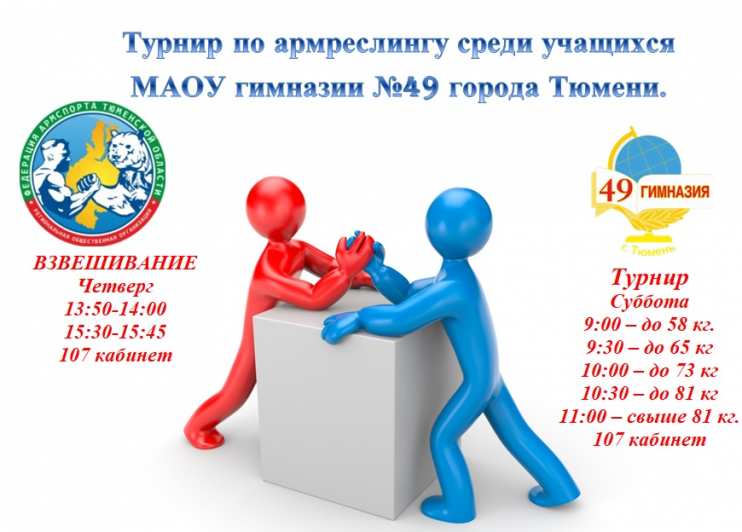 Еще с древних времен помериться силой рук считалось более благородным делом, чем размахивание мечами или дубинами. Однако армрестлинг как вид спорта возник совсем недавно, всего лишь с 1952 года. В МАОУ гимназии №49 города Тюмени 22.10.2022 г. проходил турнир по армрестлингу среди учащихся гимназии №49 города Тюмени. Данный турнир позволил выявить лучших в этом виде спорта среди мальчиков и девочек. Участие приняли с 5 по 11 класс в своей весовой категории.