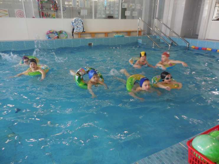 Материалы и оборудование: Стенд «Правила поведения в бассейне». Набор картинок «Правила поведения на воде». Мячи. Кольца и шайбы для ныряния. Круги надувные.