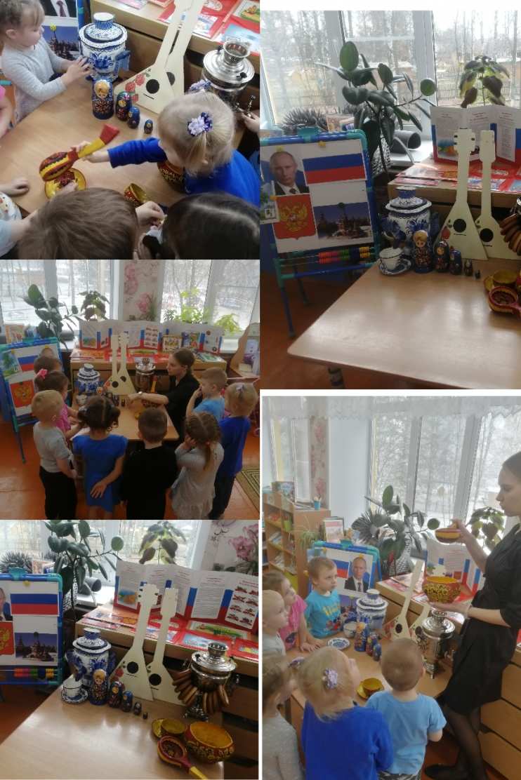 Дети рассматривали флаг, герб, портрет президента РФ.