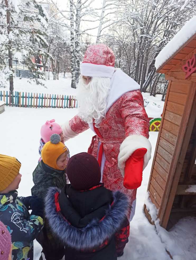 В день рождения Дедушки Мороза (18 ноября) искали нашего волшебника по его следам. Ребята обрадовались, когда нашли его в домике. После встречи дети вместе с Дедом Морозом играли в задорные игры: "Передай снежок", "Заморожу", "Варежка", отгадывали загадки, танцевали (музыкальная игра) "Если нравится тебе, то делай так...".