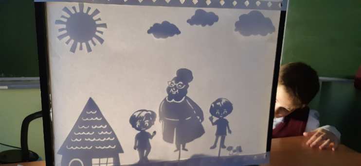 Четвёртым классам было предложено задание представить осетинскую народную сказку «Что дороже» (сказку о счастье человека). Мы выбрали номинацию «Театр теней». Методические рекомендации и сценарий получили, фигурки вырезали, театр готов! Но оказалось, что это так сложно: актёрам прятаться за ширмой, а мне снимать все действия одним кадром — просто невозможно.