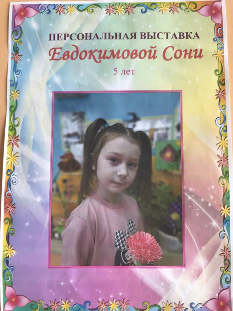 Вот сегодня решила поделиться организацией персональной выставки воспитанницы Евдокимовой Софии, 5 лет, которая очень мечтала организовать такую выставку после персональной выставки одного мальчика.