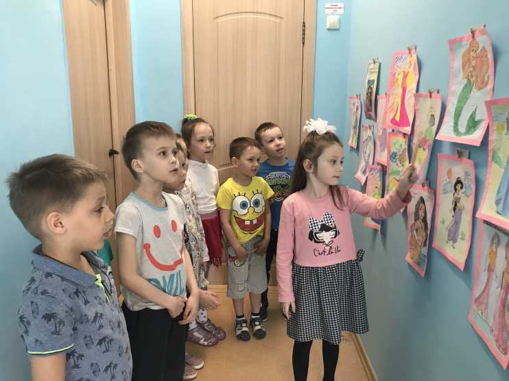 Как-то ее мама сказала, что Соня мечтает о такой выставке, т. к. очень любит разукрашивать принцесс и мечтает устроить выставку, как другие дети в группе. Дома девочка разукрасила принцесс вместе с мамой (для нее это большое достижение), подписали с обратной стороны их имена. Подготовили мини-рассказ о каждой принцессе, чтобы она могла о них рассказать во время презентации своей персональной выставки. А мы придумали совместно с девочкой название выставки.