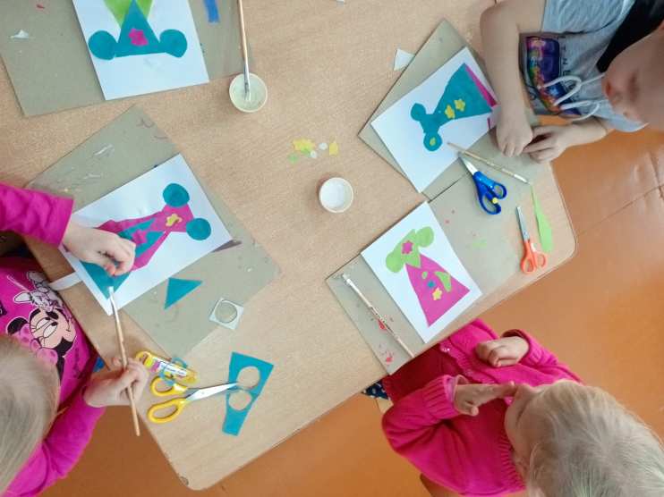 На занятии по аппликации дети выступили в роли дизайнеров, смастерив платье для мамы.