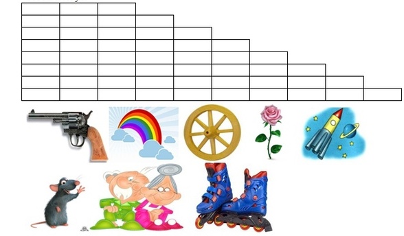1. Заполни лесенку существительными, которые начинаются на букву R. Рисунки тебе помогут.