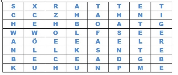 3. Если ты правильно впишешь в горизонтальные клетки немецкие существительные без артикля, то прочитаешь в выделенных клетках, кто ты.