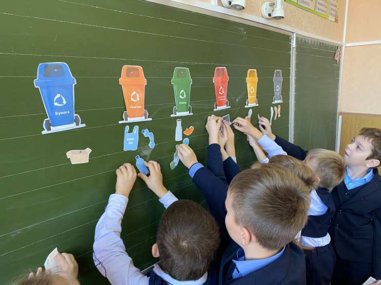 На уроке «Окружающий мир» в 1 классе мы изучали тему: «Откуда берется и куда девается мусор?» В ходе занятия ребята учились сортировать мусор.