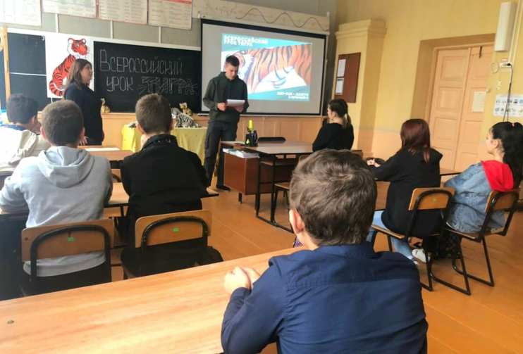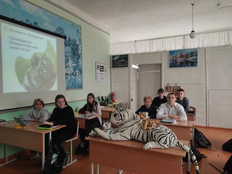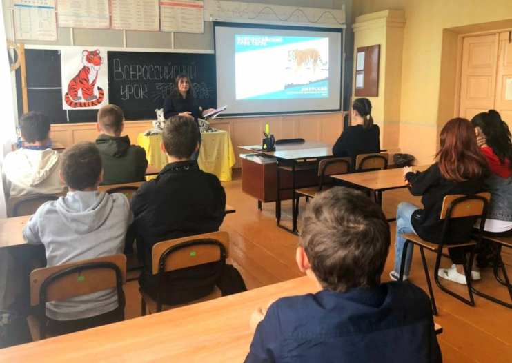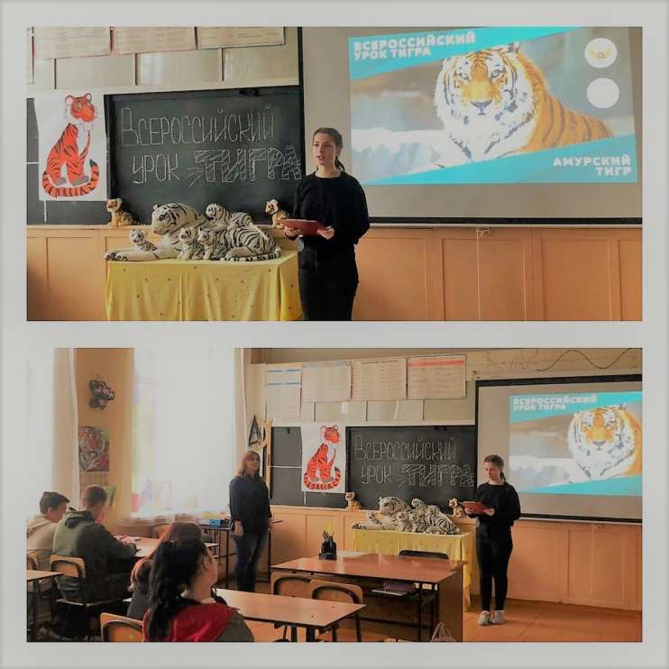 4 октября в МБОУ Елизаветинской СОШ Азовского района прошёл Всероссийский урок тигра в 7, 9 и 11 классах. Целью такого мероприятия было привлечение внимания к проблеме уязвимости амурских тигров и к вопросам защиты этих удивительных животных и их среды обитания.