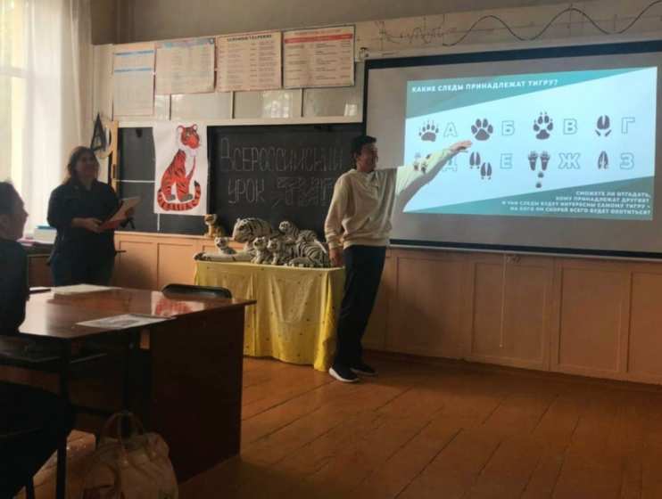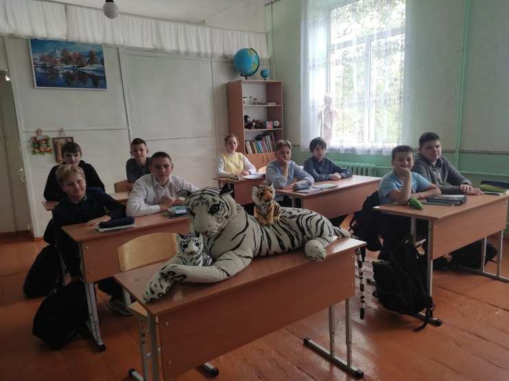 Ученица 11 класса прочитала стихотворение, а ученики 7-9 класса выступили с сообщениями о характере и привычках амурского тигра. Ребята поучаствовали в викторине, отгадали следы, рёв и полоски среди других животных, а также узнали много интересного и сделали вывод о том, что нужно любить природу и беречь её!