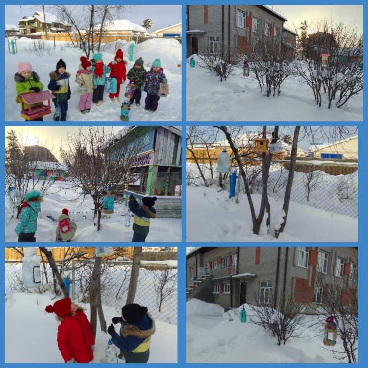 На территории детского сада была открыта птичья столовая - составлено меню для синиц, снегирей и воробьев. Папы дошкольников из старшей группы показали мастерство столяров в изготовлении кормушек. А мамы с детьми отнеслись творчески, расписывая кормушки.