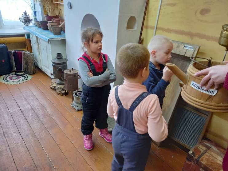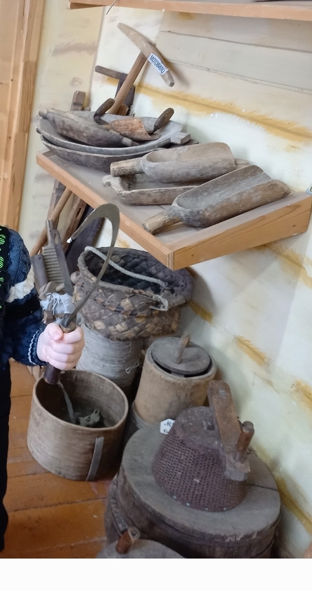 Мы узнали, что музей-избу «Скалинка» удалось создать 15 лет назад. В этом музее хранится память о старине, где есть муляж русской печки, много утвари и экспонатов (ухват, кочерга, хлебная лопата, крынка, утюг угольный, рубели и вальки, прялка, глиняная посуда), которые вызвали большой интерес у детей.
