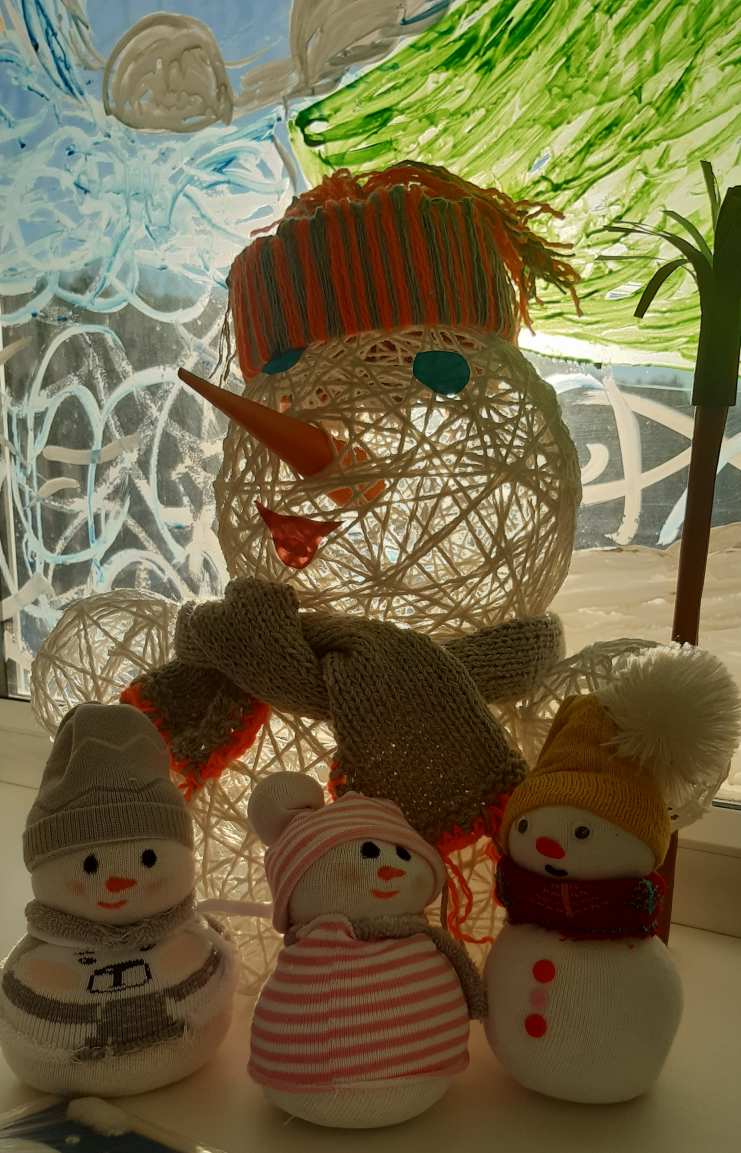 Родители вместе со своими детьми проявили фантазию и творческие умения. Снеговики были сделаны из различного материала: бумага, ватные диски, пластилин, манка, нитки, картон, ткань. В общем, все, что нашлось под рукой. Большие и маленькие, мягкие, яркие, красочные, сказочные Снеговики удались на славу! Видно, что в каждую работу вложено много труда, старания и каждая выполнена с душой. Совместное творчество взрослых и детей позволяет укрепить эмоциональные семейные связи, доставляет приятные минуты общения. А сколько гордости и радости испытывают дети, показывая своим друзьям из группы Снеговика, изготовленного дома с мамой, папой или бабушкой.
