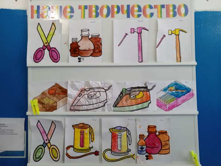 На занятии по рисованию «Опасные предметы» дети раскрашивали опасные предметы, бытовую технику.