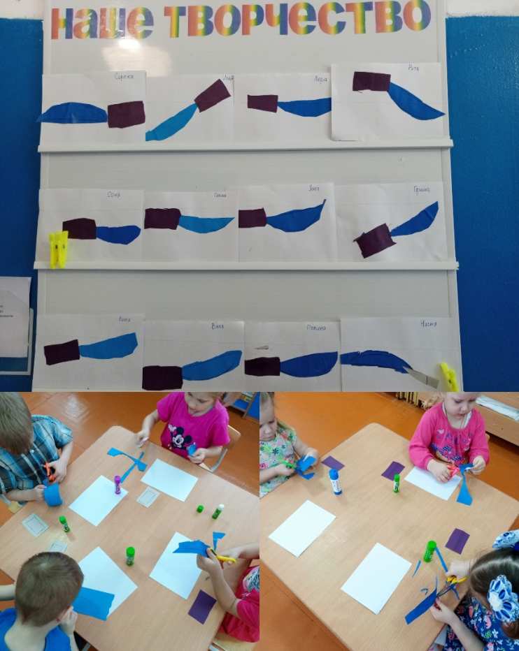 А на занятии по аппликации дети сделали «Острые ножи»