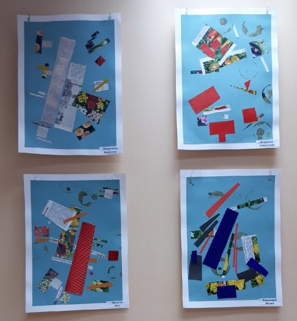 Используя набор геометрических элементов, учащиеся 4 класса создали серию гармоничных композиций с разными характеристиками: симметричную, статичную, закрытую, нюансную, асимметричную, динамичную, открытую, контрастную, с разными видами ритмов.