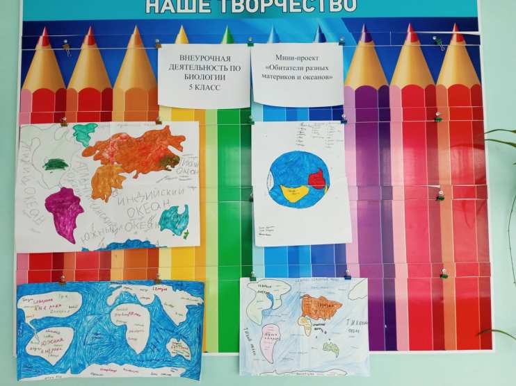 8 апреля 2022 года в Центре «Точка роста» Родниковской школы на внеурочном занятии в 5 классе обучающиеся выполняли мини-проект на тему «Обитатели разных материков и океанов». Обучающиеся проделали большую работу по сбору и систематизации информации о том, какие животные и растения проживают в океанах и на материках нашей необъятной планеты, выяснили среду обитания животных и растений. Затем ребятами была воссоздана поверхность Земли при помощи рисунка и расселены животные и растения.