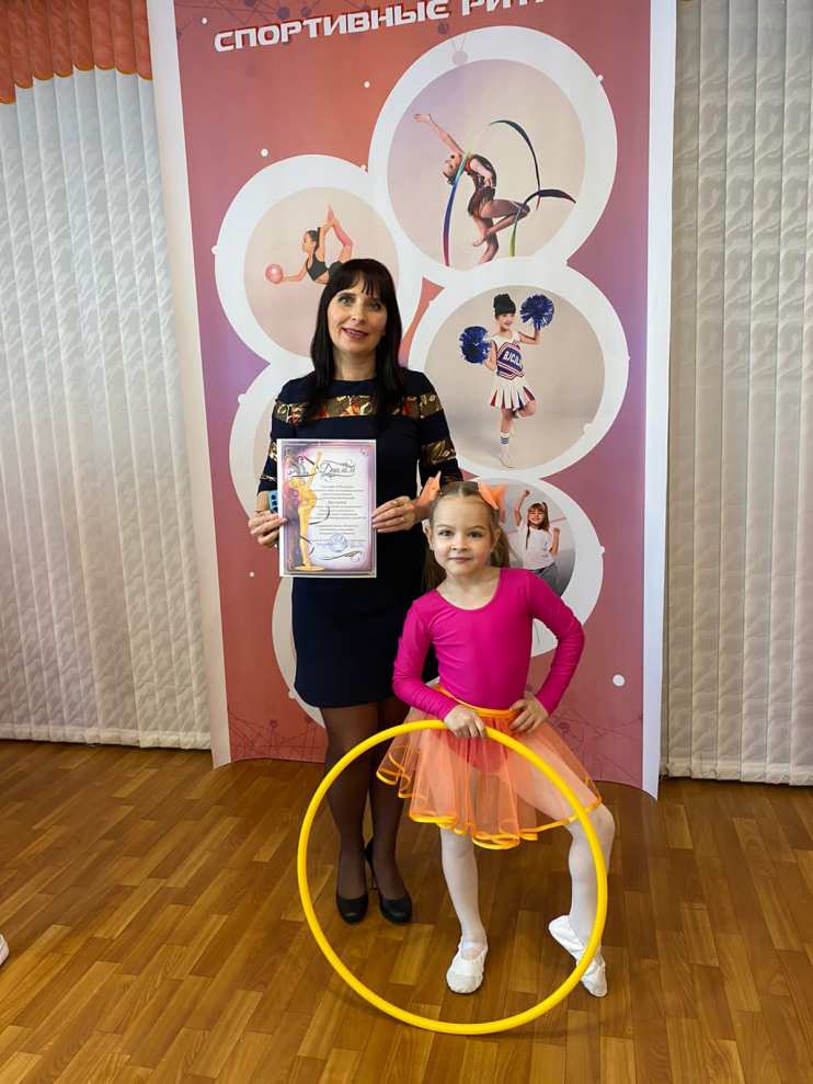 Под задорную музыку Таисия покорила зрителей своими акробатическими упражнениями, ей аплодировал весь зал. Наградили участницу сладким призом и грамотой.