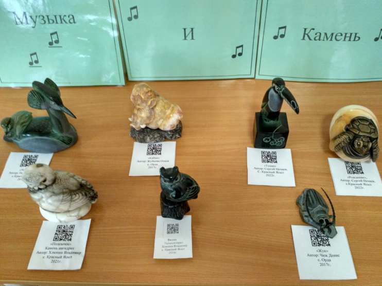 В гости к детям приехал мини-музей с выставкой «Музыка и камень» в рамках мероприятий, посвящённых празднованию 360-летия г. Кунгур. На выставке представлены работы мастеров-камнерезов Ординского и Кунгурского муниципальных округов. Скульптуры, выполненные в жанре анималистики, вызывают большой интерес у малышей. Цель выставки: формирование у детей первичных представлений о музеях, развитие художественных, изобразительных навыков, знакомство с камнерезным промыслом, с профессией мастер-камнерез.
