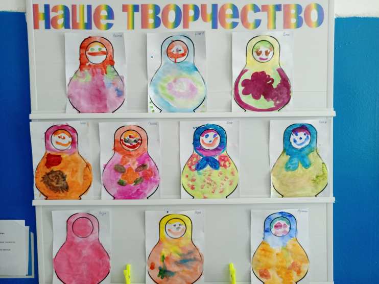 А на занятии по рисованию дети расписывали костюм у русской народной игрушки — матрёшки.