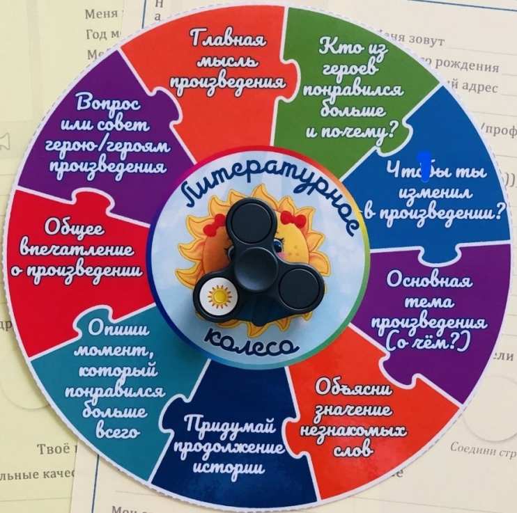 На завершающем уроке по произведению часто запускаю его. Идею почерпнула на просторах интернета, опробовала в нескольких классах, детям понравилось. Во-первых, никогда не знаешь, какой вопрос достанется, эффект лотерейного билета, так сказать. Во-вторых, после ответа ученик выбирает следующего "игрока". В результате вращения колеса дети отвечают на такие вопросы: "Кто из героев понравился больше и почему?"; "Что бы ты изменил в произведении?"; "Какой совет ты бы дал герою?"... В то время, пока один ученик крутит колесо и отвечает на выпавший вопрос, остальные следят за правильностью ответа, если он будет неточным или неверным, поправляют, дополняют ответ. Таким образом, достаточно большое количество учащихся получают отметки за урок.