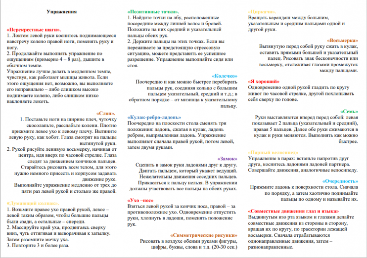 Ниже памятка по выполнению гимнастики для мозга, найденная мной на просторах интернета. Будьте здоровы! Мыслите ясно и творчески!