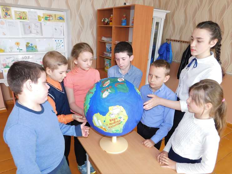 На внеурочном занятии учащиеся начальной школы узнали о пользе продуктов глобуса для организма.