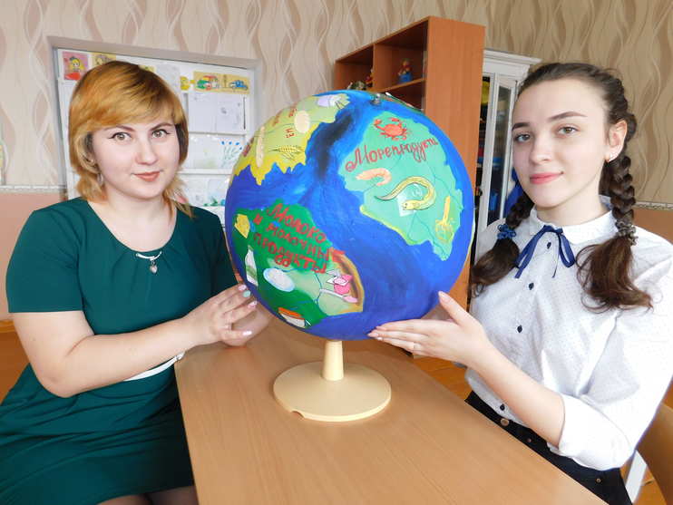В апреле 2018 года в МБОУ Елизаветинской СОШ Азовского района Дарья Федько под руководством Дроздовой И.С. выполнила оригинальную и необычную творческую работу - глобус здорового питания.