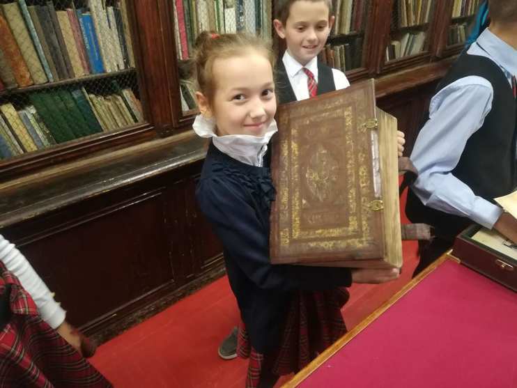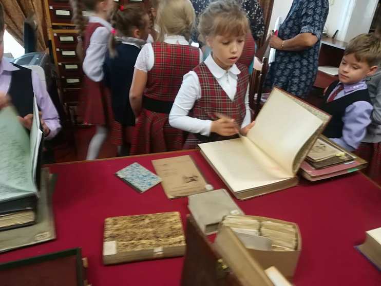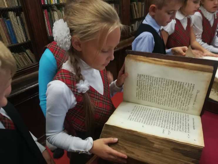 Замечательные книги нам дали посмотреть, подержать в руках, прикоснуться к истории. Невозможно остаться равнодушным к оформлению этих книг.