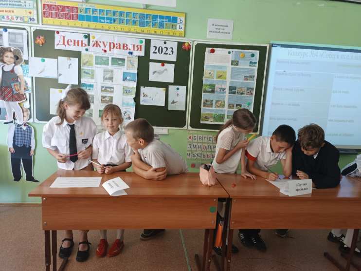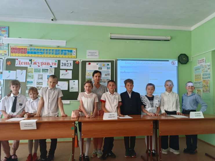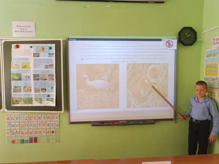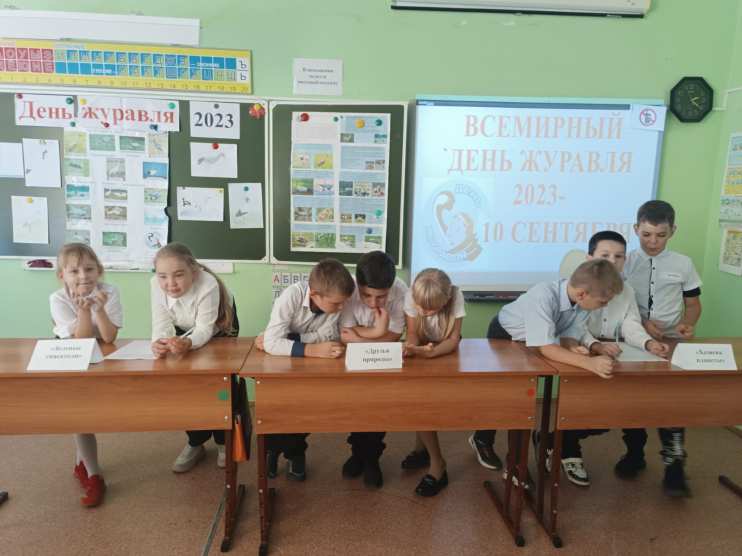 Работа прошла содержательно, интересно и организованно. Доска кабинета была оформлена тематическими стендами «Журавли, гнездящиеся в России и за ее пределами». В начале мероприятия ведущие прочли стихотворения о журавлях.
