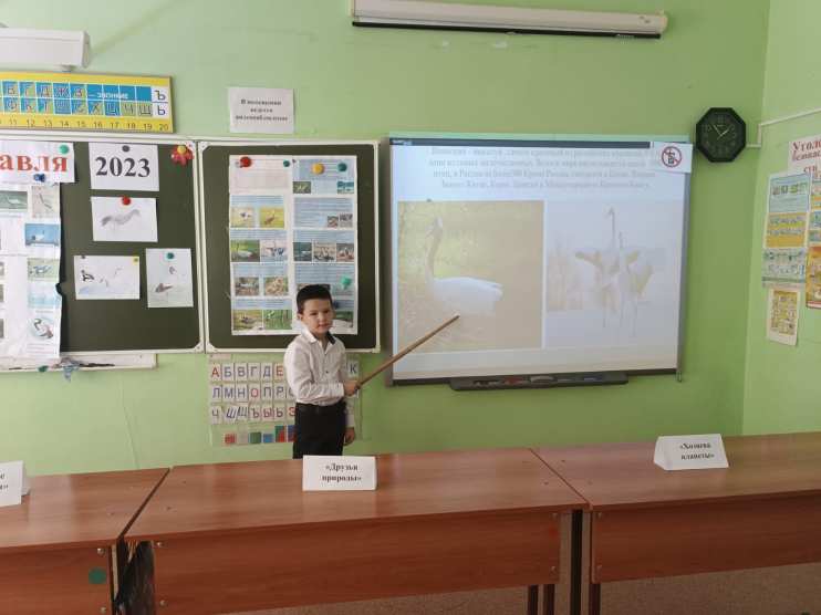 Классный руководитель Симонова В.В.: во вступительном слове рассказала о том, что 2020 год был объявлен «Годом журавля», и акцентировала внимание на цели акции «Всемирный день журавля»: привлечение внимания к проблеме сохранения журавлей и их мест обитания.