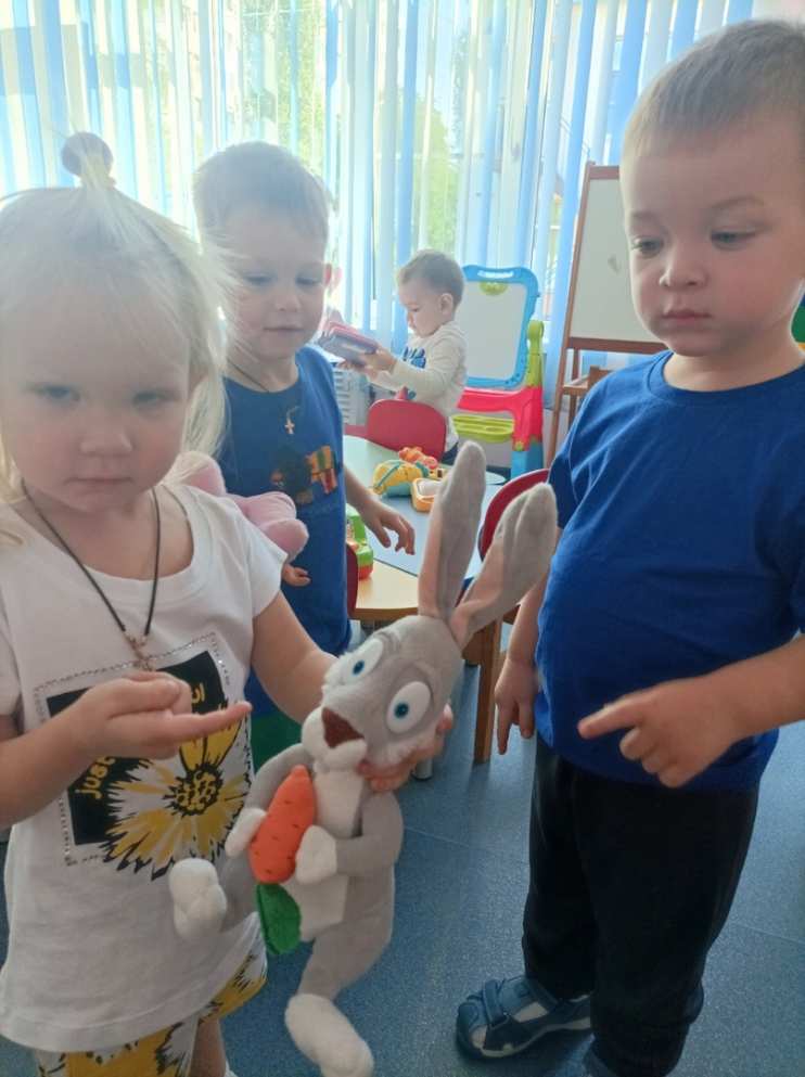 Передвигаясь по группе, дети запоминают, где что хранится, упражняются в наблюдательности. Провели подвижную игру "Зайка серенький сидит". В процессе "путешествия" есть возможность занять малышей, познакомить их друг с другом, помочь адаптироваться к условиям детского сада.