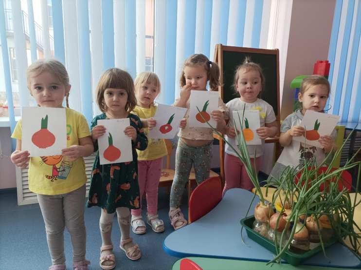 Ребята провели наблюдение за ростом лука и отметили, что перья стали длиннее. Также рассматривали картинки с изображением овощей и отгадывали загадки о луке.