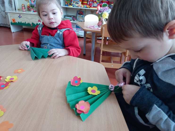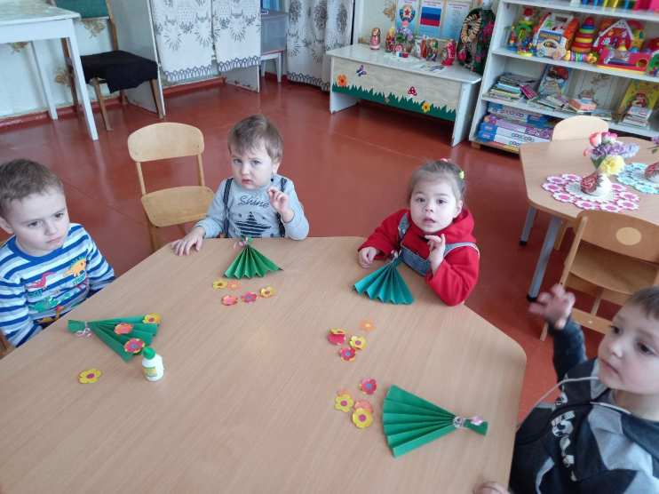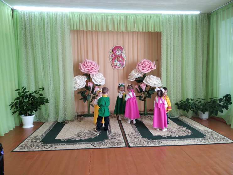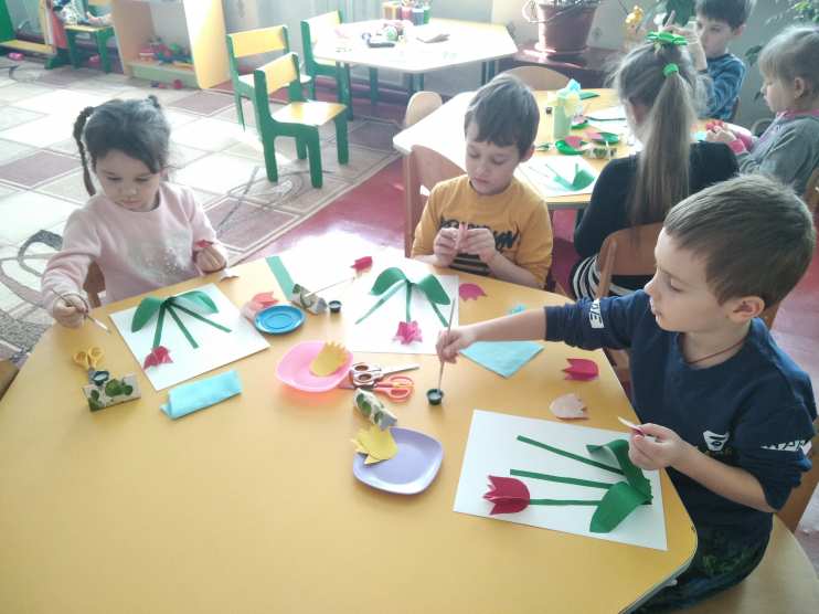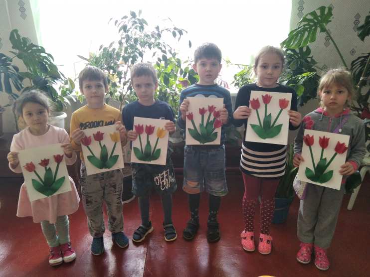 К празднику воспитатели старшей и младшей разновозрастных групп провели подготовительную работу с детьми, изготовили букеты для любимых мам. Букеты были вручены мамам в конце мероприятия.