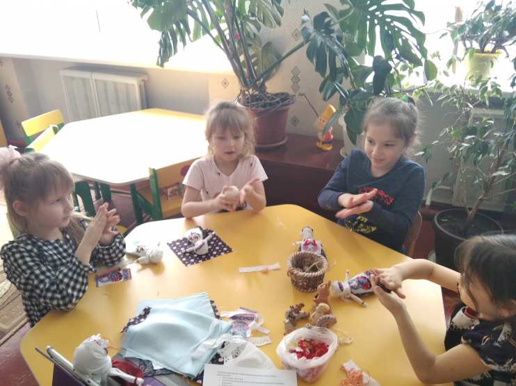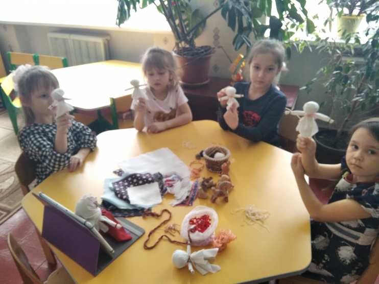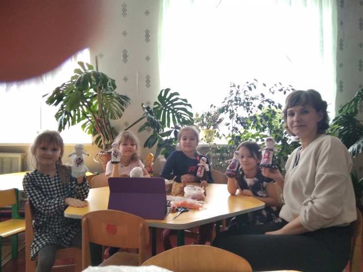 Психолог: Молодцы, девочки, вы таких красивых кукол сделали, показали нашей гостье, что смогли справиться со всеми заданиями. Давайте попрощаемся с Берегиней до следующей встречи. А кукол сможете забрать с собой домой и показать родителям.