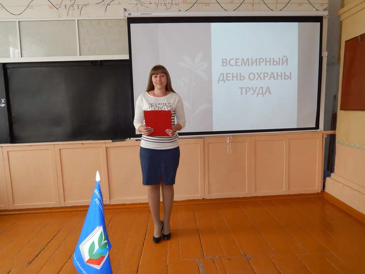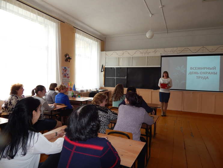 Председатель ПК школы Белова С.С. организовала и провела заседание круглого стола, где сотрудникам школы был предложен просмотр информационной презентации из истории Всемирного дня охраны труда. После этого присутствующие члены профсоюза стали участниками тематической викторины «Охрана труда должна быть всегда!». Обе команды показали отличные знания, в результате чего победила дружба.