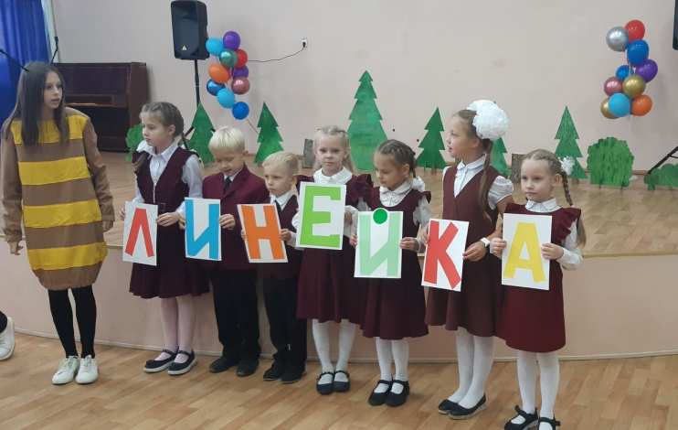 На праздник к первоклассникам пришли мультипликационные герои Лунтик и Пчелёнок. Они тоже очень хотели учиться в школе и вместе с ребятами собирали портфель, помогали складывать слова на школьную тему. А вредные гусеницы Вупсень и Пупсень, как всегда, хулиганили и мешали вести праздник.