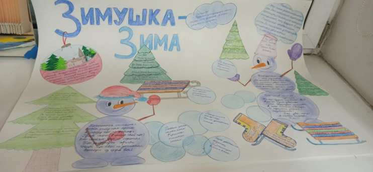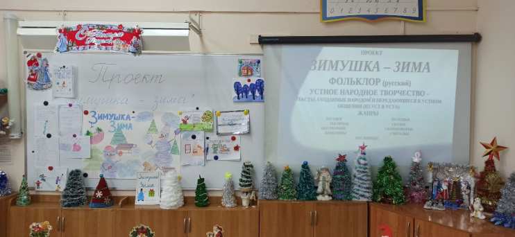 Ещё один большой проект был сделан во втором классе — «Зимушка-зима» по произведениям русского фольклора. Ребята представляли все виды фольклора (кроме сказки): потешки, загадки, небылицы, пословицы и поговорки, заклички, скороговорки. Работали по группам и представляли проект инсценированием выбранных произведений. Ребята должны были найти все виды произведений, дать определение каждому, выбрать понравившиеся и представить. Получилось очень интересно. Некоторые группы даже костюмы придумали.
