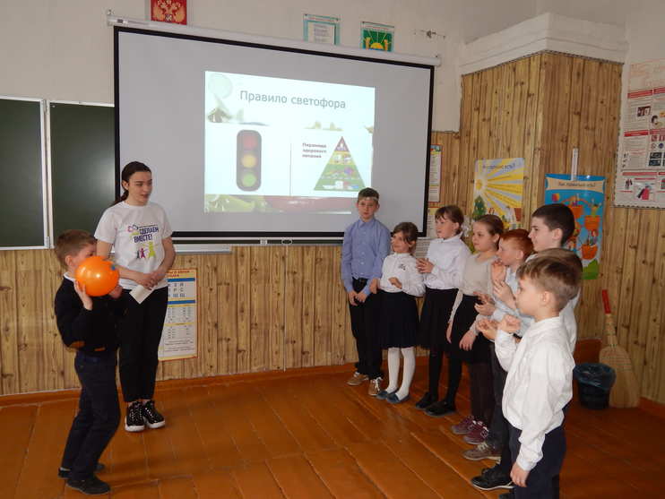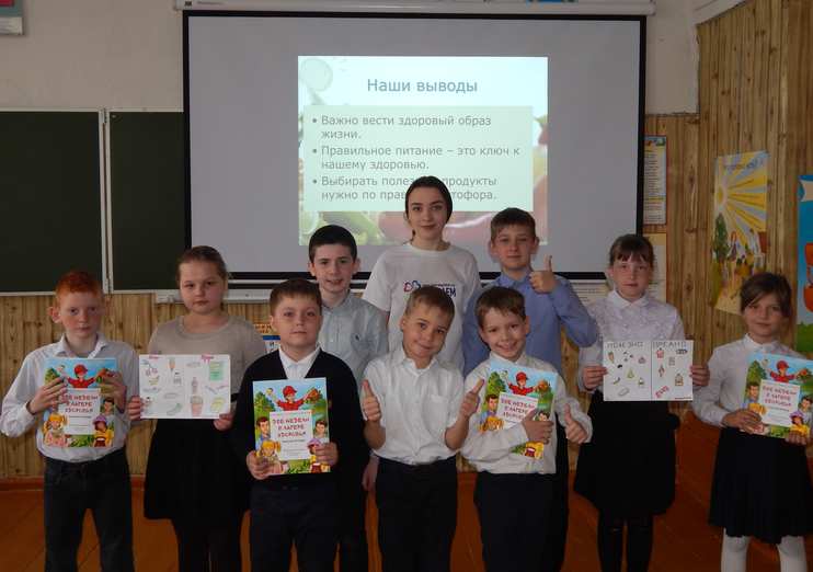 В МБОУ Елизаветинской СОШ Дарья Федько провела во 2 и 4 классах интерактивное занятие "Секреты правильного питания".