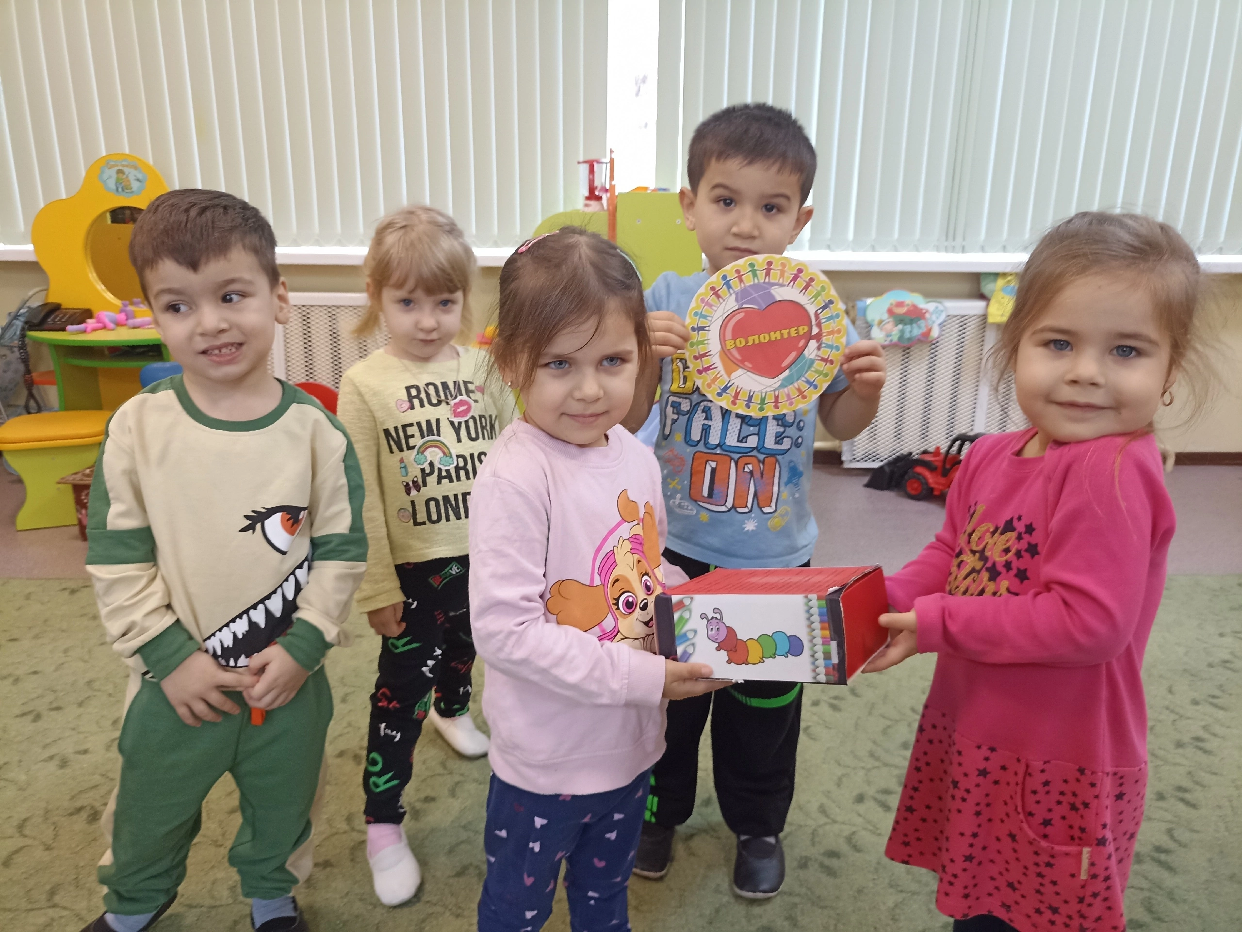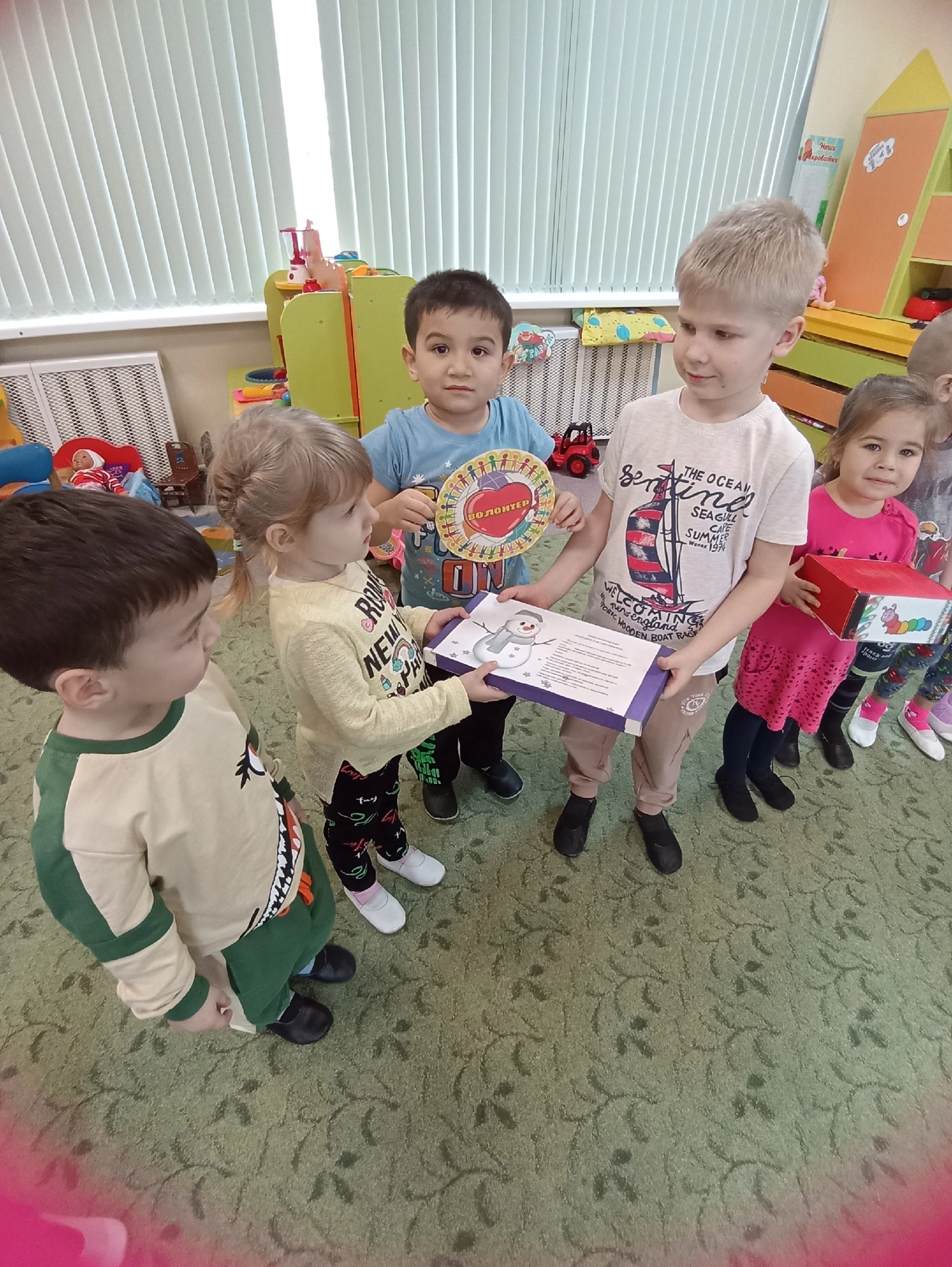 В нашем детском саду реализуется технология «Маленькие волонтёры», предполагающая разновозрастное общение между детьми, помощь старших дошкольников младшим.